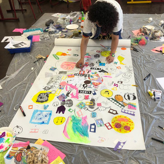 4 séquences d'une heure trente chacune avec chaque classe sur l'égalité, les droits des enfants et l'accès à des métiers non genrés ont été suivies par des ateliers d'arts plastiques animés par des artistes.